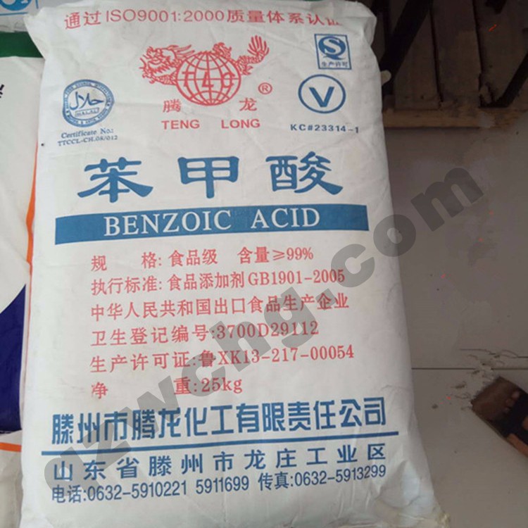 苯甲酸可以用作食品、飼料、乳膠、牙膏的防腐劑。在酸性條件下,對(duì)霉菌、酵母和細(xì)菌均有抑制作用,但對(duì)產(chǎn)酸菌作用較弱。苯甲酸分子態(tài)的抑菌活性較離子態(tài)高,故PH小于4時(shí),抑菌活性高,抑菌的最適pH值為2.5~4.0,一般以低于pH值4.5~5.0為宜。由于苯甲酸對(duì)水的溶解度低,故實(shí)際多是加適量的碳酸鈉或碳酸氫鈉,用90℃以上熱水溶解,使其轉(zhuǎn)化成苯甲酸鈉鈉后才添加到食品中。若必須使用苯甲酸,可先用適量乙醇溶解后再應(yīng)用。由于苯甲酸對(duì)水的溶解度比苯甲酸鈉低,因此在酸性食品中使用苯甲酸鈉時(shí),要注意防止由于苯甲酸鈉轉(zhuǎn)變成苯甲酸而造成沉淀和降低其使用效果。苯甲酸在醬油、清涼飲料中可與對(duì)-羥基苯甲酸酯類一起使用而增效。